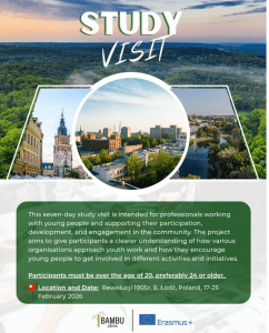 Bu 7 günlük eğitim ziyareti, gençlerin topluma katılımını, gelişimini ve aktif vatandaşlık süreçlerini destekleyen kurumların çalışma pratiklerini yakından gözlemlemek isteyen kişiler için hazırlanmıştır. Katılımcılar, farklı ülkelerdeki kurumların gençlik çalışmasına nasıl yaklaştığını, gençleri çeşitli faaliyetlere nasıl teşvik ettiğini ve toplumsal etkileşimi nasıl güçlendirdiğini yerinde inceleme fırsatı bulmuşlardır.